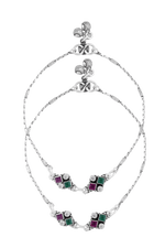 Crafted in 925 sterling silver, this anklet showcases a deep, shadowed finish highlighted by hand-set stones. Sculptural and expressive, it reflects a modern interpretation of heritage-inspired luxury.