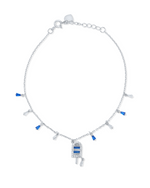 This playful 925 silver bracelet features a vibrant popsicle charm encrusted with dazzling blue baguette stones and shimmering white accents. The chain is adorned with alternating blue and white gemstone danglers, adding a fun, youthful...