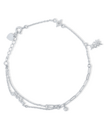 This elegant 925 silver bracelet features a unique multi-layered design that blends celestial charm with contemporary style. It showcases delicate star motifs, a “Moon” script detail, sparkling accents, and a modern paperclip chain—making it a...