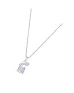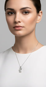 This charming silver necklace features a delightful padlock and key motif as its central pendant, both intricately adorned with sparkling cubic zirconia (CZ) stones. The rectangular padlock is fully encrusted with CZs, while the accompanying key, with a decorative clover-shaped top, rests elegantly beside it. The delicate chain completes this symbolic and brilliant piece, perfect for adding a touch of elegance and meaning to any outfit.