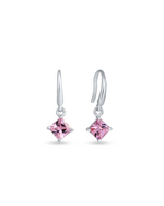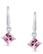 These charming silver dangle earrings feature a single, square-cut pink Cubic Zirconia (CZ) stone. The delicate pink hue of the CZ adds a subtle pop of color, while the simple hook design ensures comfortable wear. These minimalist yet elegant earrings are perfect for adding a touch of feminine charm and sparkle to any outfit.