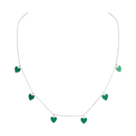 Crafted in 925 sterling silver, this necklace features vivid green stones shaped into softly contoured forms, arranged with graceful balance along the neckline. Radiant yet refined, it brings a sense of freshness and sophistication, offering a striking expression of colour within a timeless design.