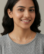 Crafted in 925 sterling silver, this chain is designed with a fine, lightweight profile that sits gently along the neckline. Subtle in presence yet refined in finish, it offers effortless elegance, perfect for everyday wear or soft layering.