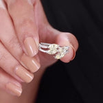 A floral dew ring in 925 silver with petal-like contours on top, offering gentle botanical texture and beauty. Product Details: 92.5 % Pure Sterling Silver. Stamp will be on product itself.• Finest Quality Cubic...