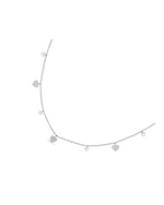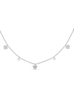This lovely 925 silver necklace features a delicate chain adorned with an alternating pattern of heart-shaped charms. Some hearts are solid and polished, while others are intricately pave-set with sparkling cubic zirconia (CZ) stones, creating a beautiful contrast. The scattered arrangement of these charming elements forms a graceful and romantic design, adding a touch of brilliance and sentimentality.