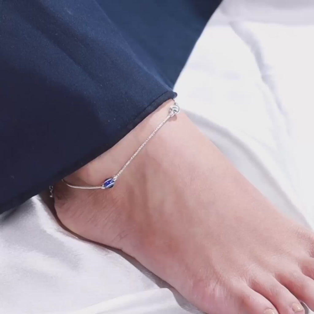 Crafted in 925 sterling silver, the Evil Eye Anklet features a refined evil eye motif designed in a clean, contemporary form. Subtle yet meaningful, this anklet adds a touch of quiet protection and effortless elegance...