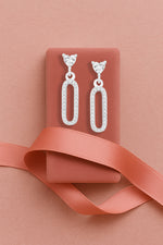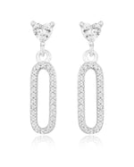 Softly curved silver drops holding a heart-formed solitaire for romantic occasions and gentle celebrations.