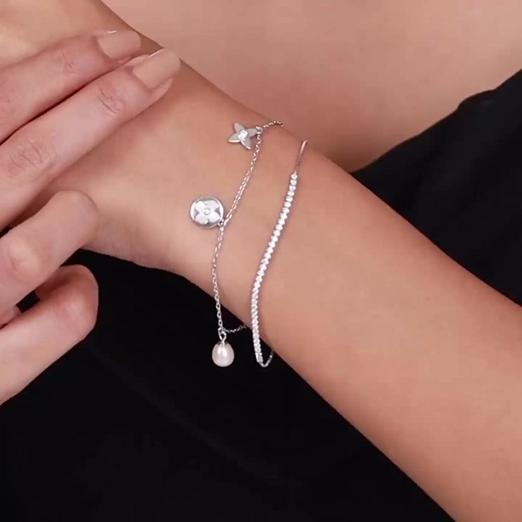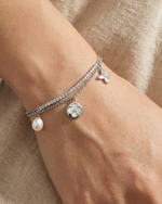 Crafted in 925 sterling silver, the Flora Pearl Bracelet features a delicate floral form accented with a refined pearl detail. Soft and graceful, this piece is designed for effortless everyday elegance.