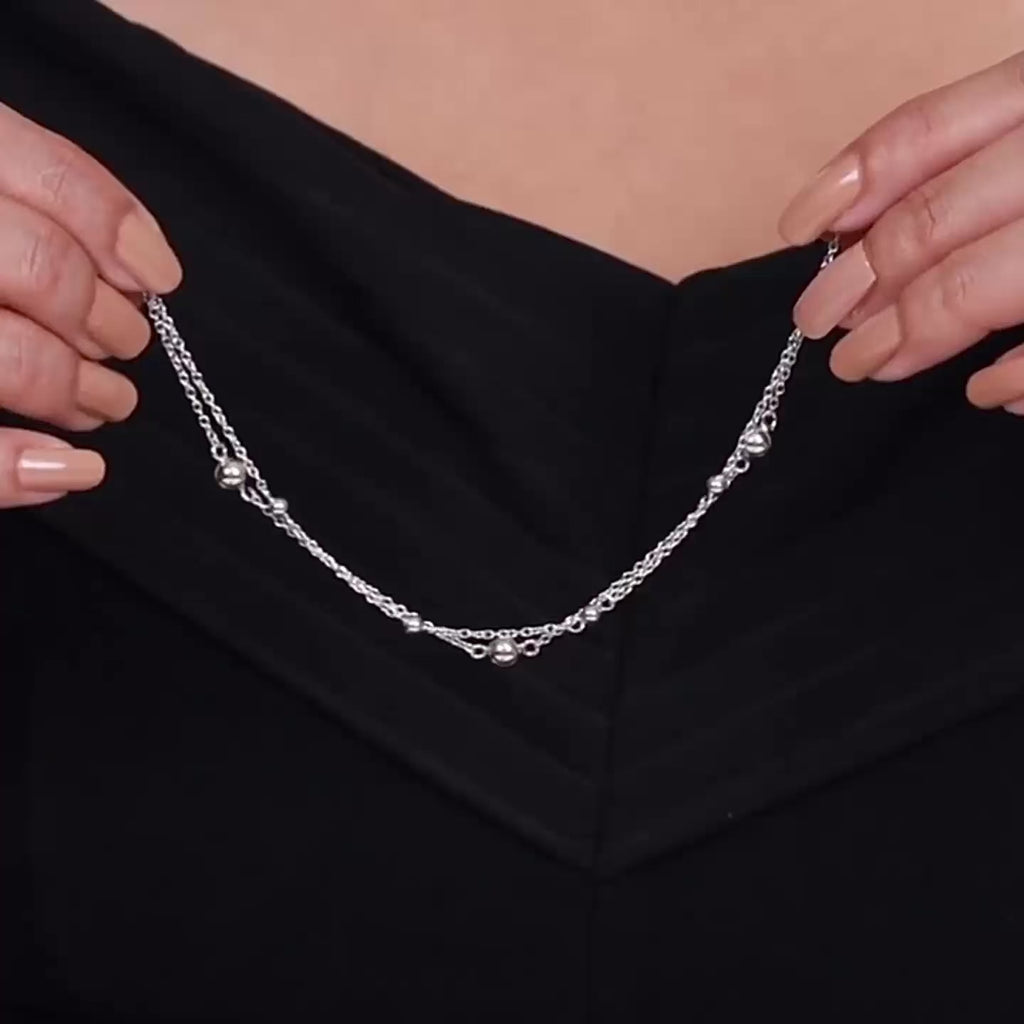 Crafted in 925 sterling silver, this chain is designed with a fine, lightweight profile that sits gently along the neckline. Subtle in presence yet refined in finish, it offers effortless elegance, perfect for everyday wear or soft layering.