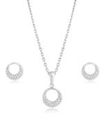 Crafted in 925 sterling silver, the Circle Crest Pendant Set features a refined circular design with polished silver detailing at the top and delicate CZ accents below. Balanced and elegant, this set is designed for effortless everyday sophistication with a modern finish.